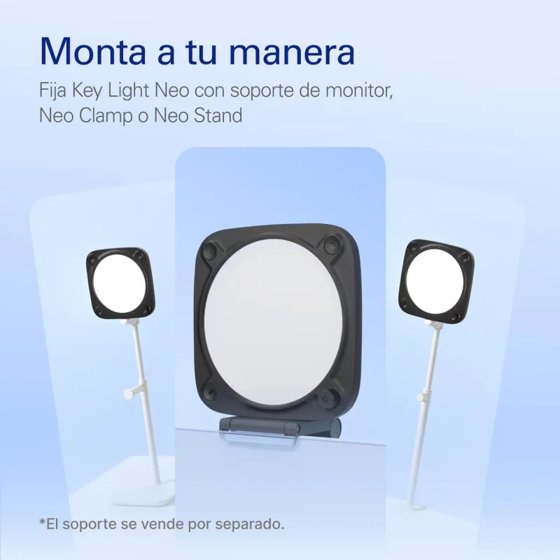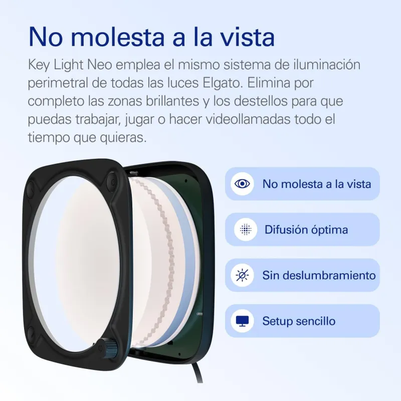 Lampara LED Elgato Key Light Neo Negro con temperatura de color 7000 K, índice de reproducción cromática 94, luz regulable de 15 W y alimentación por USB