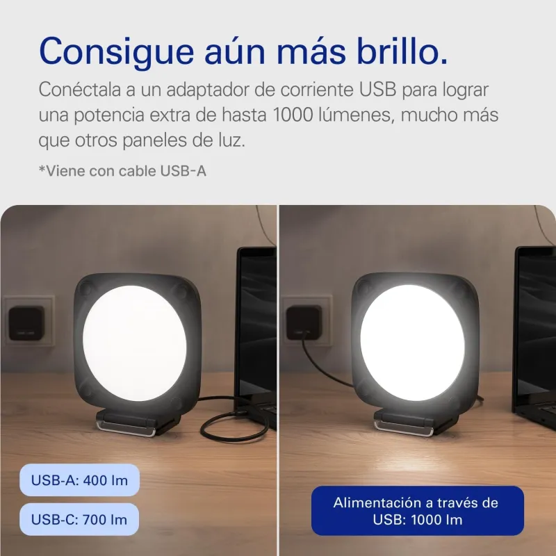 Su alimentación por USB permite utilizarla en cualquier lugar con facilidad, desde el ordenador hasta una batería externa. Esta característica, junto con su tamaño compacto de 150 mm x 150 mm y un peso de solo 246 g, la convierte en una lámpara portátil y funcional. El diseño rectangular y el acabado en color negro aportan un toque moderno y profesional que se adapta a cualquier entorno. Gracias a su temperatura de color 7000 K y su índice de reproducción cromática 94, ofrece una iluminación de alta calidad, ideal para tareas exigentes. Esta combinación de diseño, eficiencia y precisión hace que sea una elección inteligente para quienes buscan una solución de iluminación versátil y estética.
