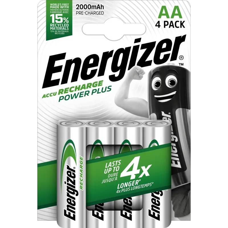 Si utilizas a diario mandos a distancia, juguetes, ratones inalámbricos o linternas, este pack de 4 pilas recargables AA Energizer ACCU Recharge Power Plus HR6 de 2000 mAh te permite alimentarlos durante horas reduciendo la compra de pilas desechables.