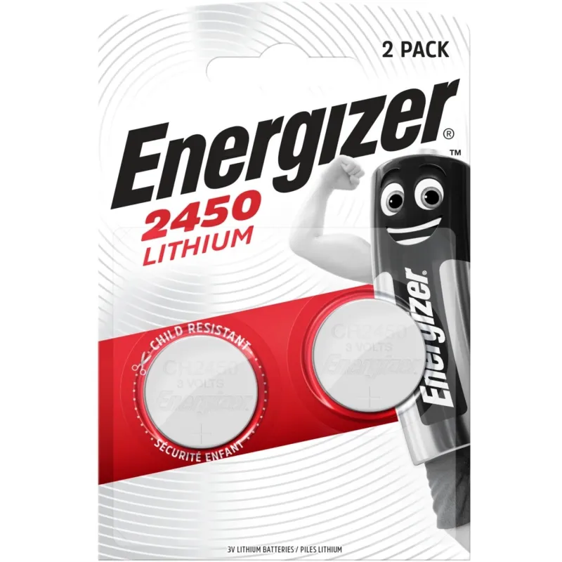 El pack incluye 2 pilas botón tipo moneda Energizer CR2450 de litio a 3V.