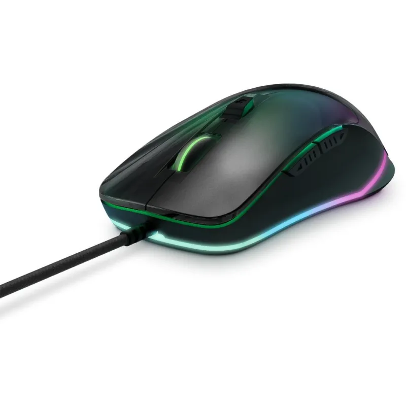 Ratón para gaming con efecto espejo iluminado con luces LED RGB en toda su superficie, 6 botones customizables con el software dedicado, cable trenzado para mayor durabilidad y apto para todo tipo de juegos y jugadores.