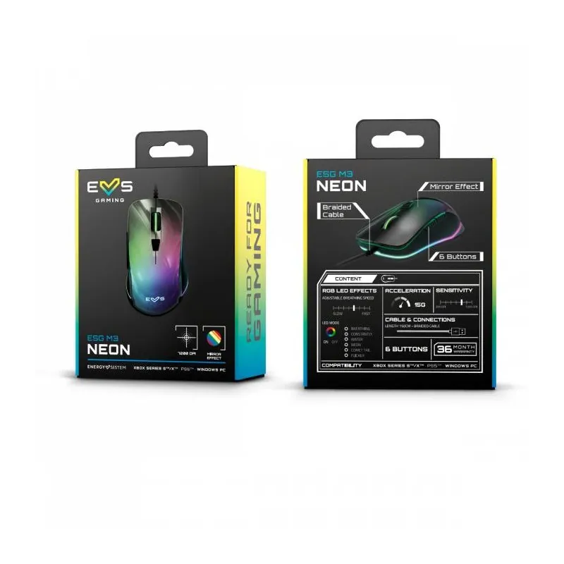 Energy Sistem 452125 ESG M3 Neon Ratón Gaming RGB 7200 DPI Negro