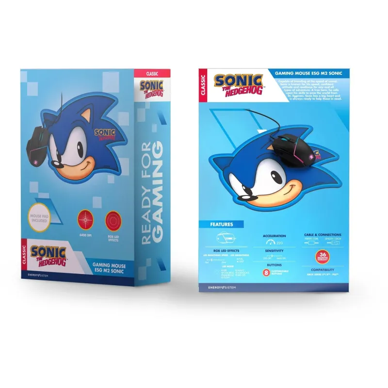 SUBE DE NIVEL CON SONIC: Ratón gaming con licencia Sonic, incluye alfombrilla gamer troquelada para completar tu setup con tu personaje preferido. El sensor óptico de hasta 6400 DPI ofrece una alta precisión de movimientos. Toma el control de los DPI del ratón con los botones, para aumentar o disminuir durante tu partida.