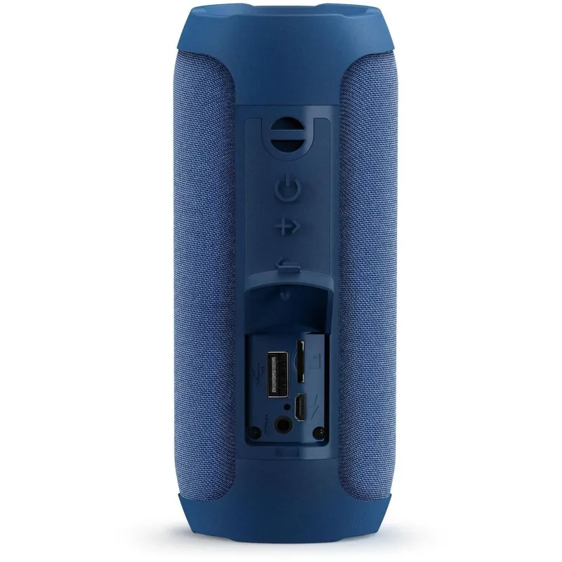 Altavoz estéreo con tecnología Bluetooth 5.0 y True Wireless Stereo para utilizar dos unidades simultáneamente. Doble membrana de realce de bajos, reproductor MP3 por USB / microSD, radio FM y audio-in.