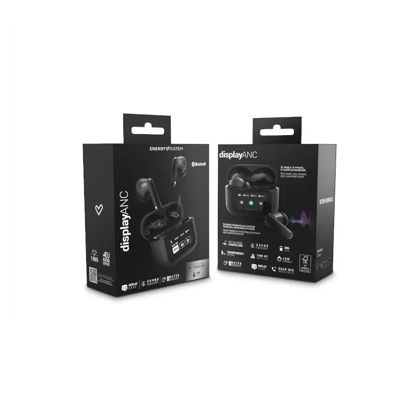 Energy Sistem Display ANC Auriculares Inalámbricos Bluetooth 5.4 Negros