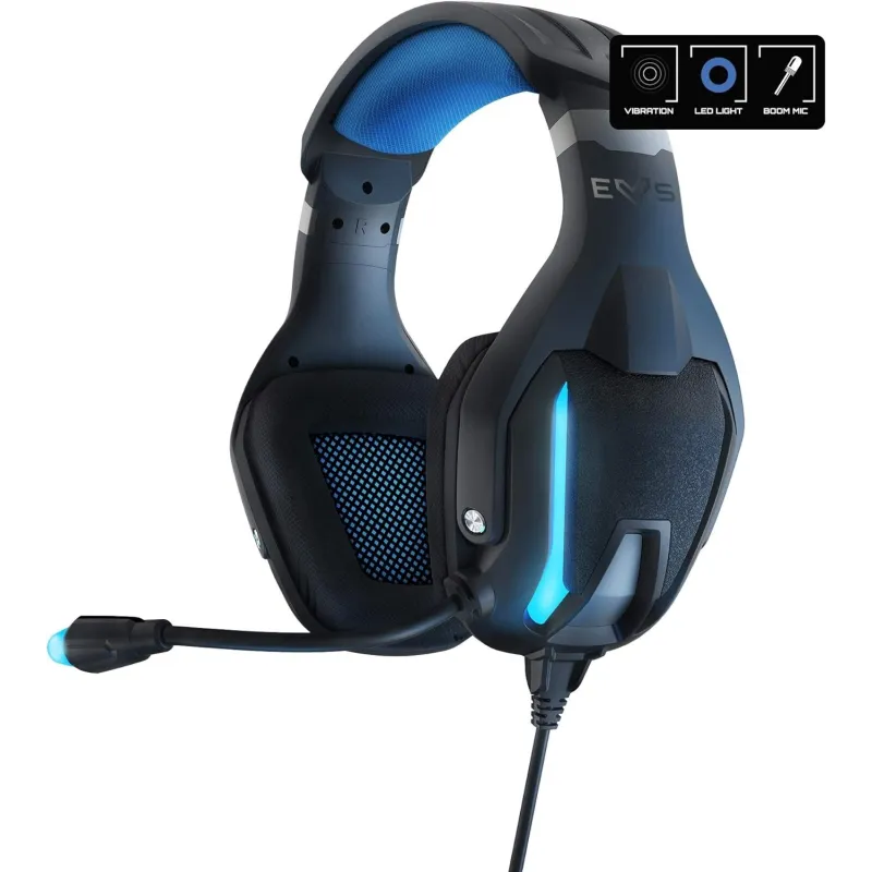 Auriculares gaming con vibración integrada y luces LED azul . Su diadema ajustable y las almohadillas transpirables están diseñadas para largas sesiones de juego, el micrófono Boom Mic omnidireccional te permitirá comunicarte sin problemas.
