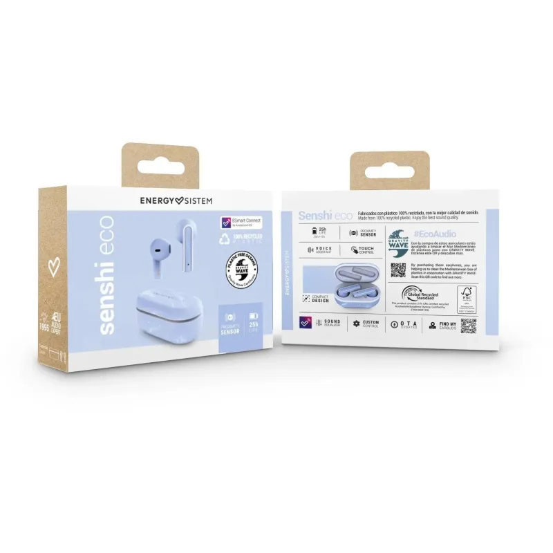 PLÁSTICO 100% RECICLADO: El planeta nos necesita. Es hora de pasar a la acción. Los auriculares True Wireless Senshi ECO están fabricados con plástico 100% reciclado, con certificación GRS (Global Recycled Standard). Porque cuidar del medioambiente es cuidar de lo importante.