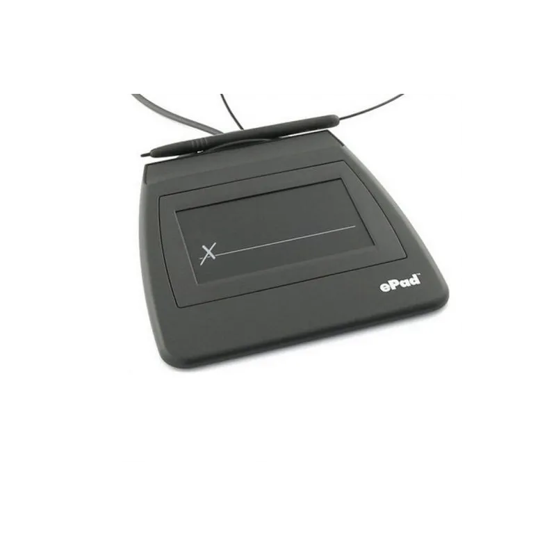 ePad® (modelo VP9801) es el dispositivo de captura de firmas electrónicas básico y de bajo coste de ePadLink para cualquier entorno, que muestra la firma en la pantalla del ordenador a medida que se firma. Para las aplicaciones basadas en IntegriSign SDK, ePad II puede utilizarse como un complemento directo que sustituye al ePad estándar.