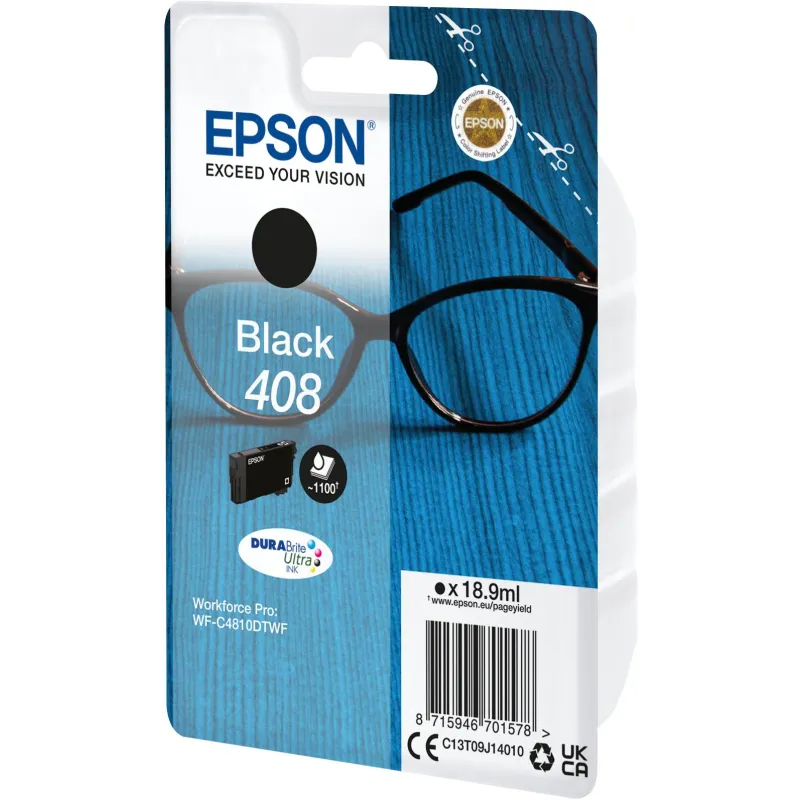 Cartucho de tinta Epson 408 C13T09J14010, original con volumen de tinta negra 18,9 ml y rendimiento de impresión 1100 páginas, compatible con WF-C4810DTWF
