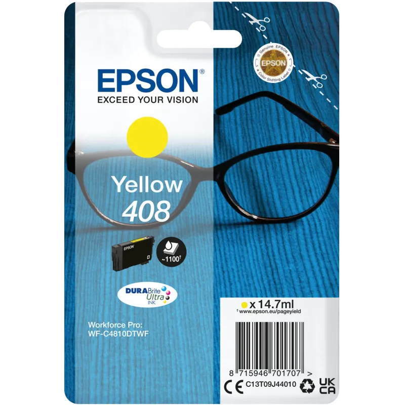 Cartucho de tinta Epson 408 C13T09J44010, color amarillo, original con volumen de tinta y rendimiento de impresión de 1100 páginas