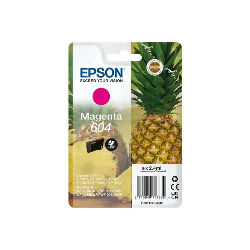 Disfruta de copias fiables con una inversión mínima gracias a las tintas Epson 604 en cuatro colores. Con la combinación de tintas negras pigmentadas y de colores a base de colorante, este pack de tintas crea copias claras y llenas de color.