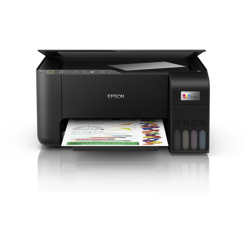 DI ADIÓS A LOS CARTUCHOS: EcoTank proporciona una solución sin complicaciones para la impresión en casa: los depósitos de tinta de ultraalta capacidad están diseñados para recargas limpias con botellas que incluyen una función de bloqueo que solo permite rellenar cada depósito con el color correcto. Asimismo, podrás prever fácilmente cuándo toca rellenar tinta gracias a la pantalla frontal.