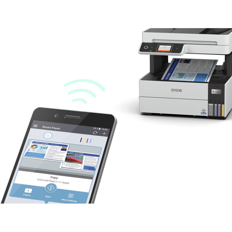 IMPRIME CASI EN CUALQUIER LUGAR: El dispositivo incluye Wi-Fi y Wi-Fi Direct, con las que puedes enviar documentos para imprimir desde dispositivos inteligentes mediante las aplicaciones Epson iPrint y Smart Panel.3