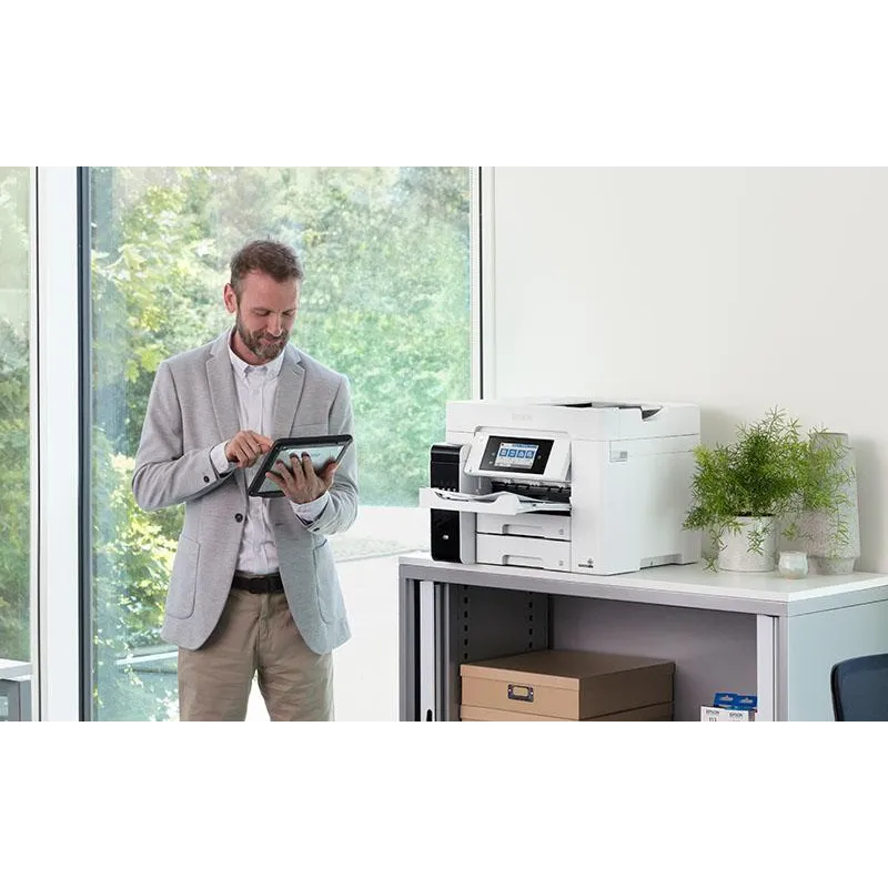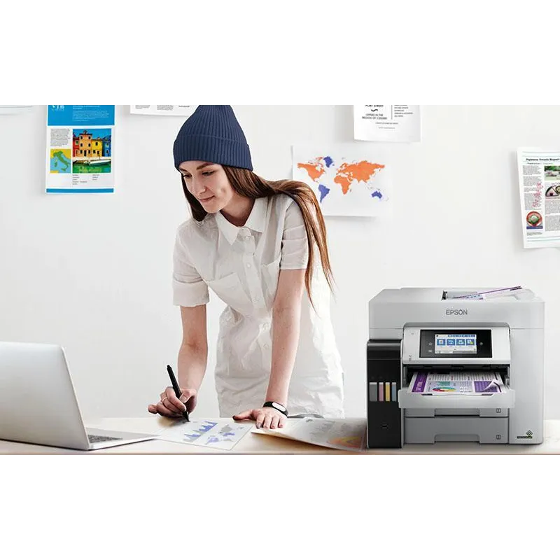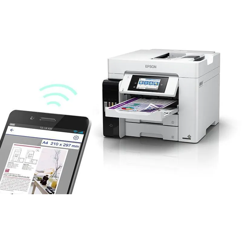 IMPRIME CASI EN CUALQUIER LUGAR: Con la ET-5880, es fácil imprimir desde móviles, tablets y ordenadores portátiles. Y gracias a que cuenta con Wi-Fi y Wi-Fi Direct, puedes enviar documentos para imprimirlos desde dispositivos inteligentes mediante la aplicación Epson iPrint².