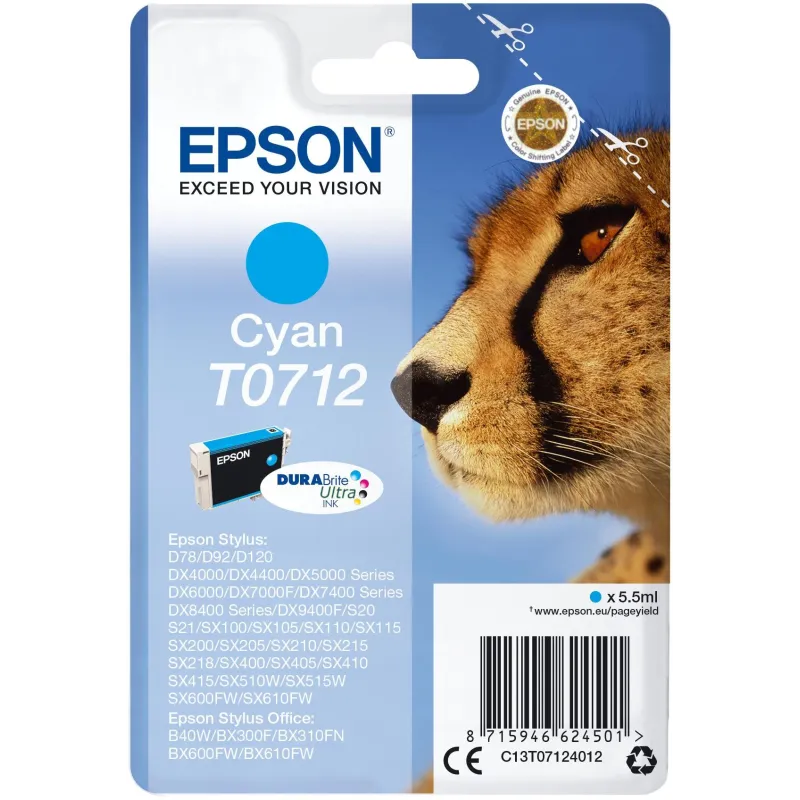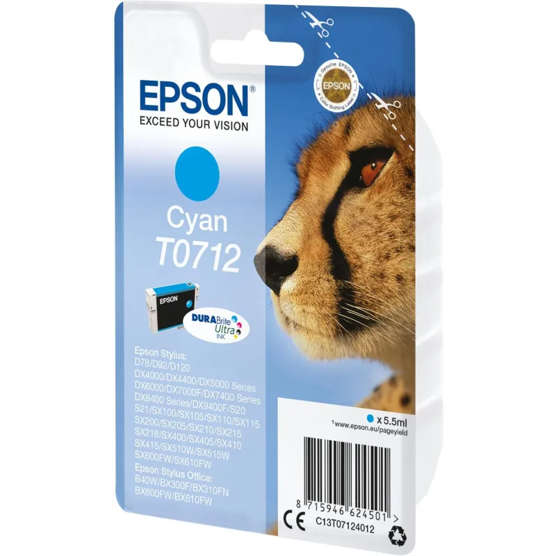 Cartucho de Tinta Epson T0712 tinta a base de pigmentos con rendimiento de 270 páginas, color Cian