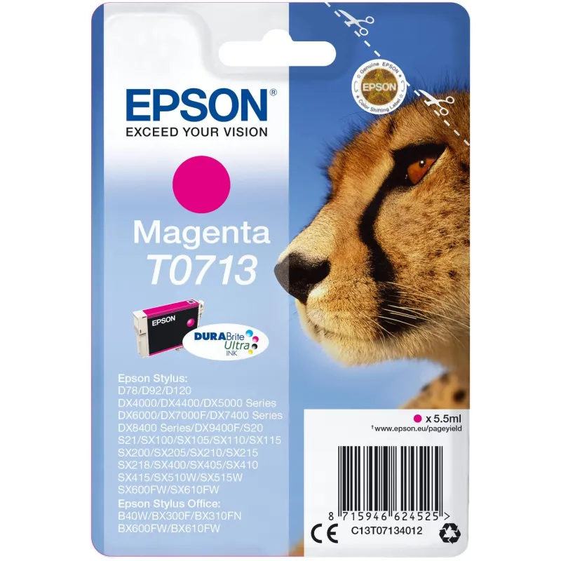 Cartucho de Tinta Epson T0713 Magenta original pigmentado, 150 páginas. Compatible con Epson Stylus