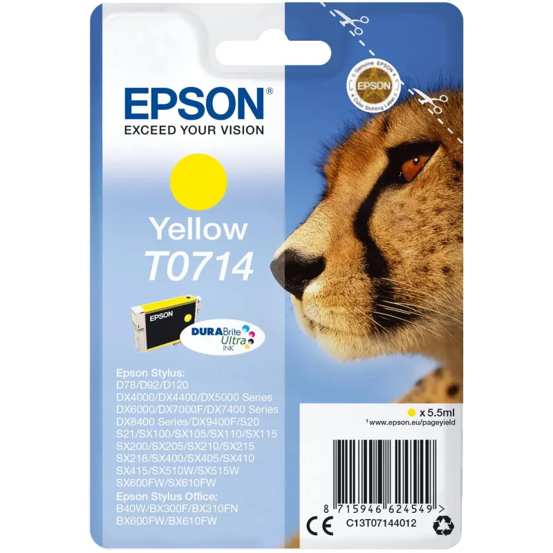 - Compatibilidad: - Epson Stylus SX600FW - Epson Stylus SX515W - Epson Stylus SX510W - Epson Stylus SX405WiFi - Epson Stylus SX405 - Epson Stylus SX400 - Epson Stylus SX218 - Epson Stylus SX205 - Epson Stylus SX200 - Epson Stylus SX110 - Epson Stylus SX105 - Epson Stylus SX100 - Epson Stylus S21 - Epson Stylus S20 - Epson Stylus Office BX600FW - Epson Stylus DX9400F - Epson Stylus DX8450 - Epson Stylus DX8400 - Epson Stylus DX7450 - Epson Stylus DX7400 - Epson Stylus DX7000F - Epson Stylus DX6050 - Epson Stylus DX6000 - Epson Stylus DX5050 - Epson Stylus DX5000 - Epson Stylus DX4450 - Epson Stylus DX4400 - Epson Stylus DX4050 - Epson Stylus DX4000 - Epson Stylus D92 - Epson Stylus D78 - Epson Stylus D120