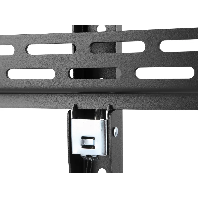 SE AJUSTA A TU TV CON UN CLIC: Tiene un sistema de bloqueo de resorte con clic automático que hace que la televisión quede fijada en su sitio. Así, te olvidarás de preocupaciones por si tu televisor se tambalea o se cae. Y si quieres desmontar el televisor, solo tendrás que pulsar un botón, sin usar ninguna herramienta.