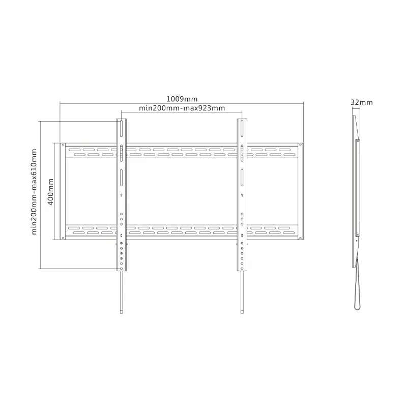 60" - 100" - Compatible con VESA: 200x200, 300x200, 400x200, 400x400, 600x400, 800x400, 800x600, 900x600 - Peso máximo soportado de pantalla: 100 kg
