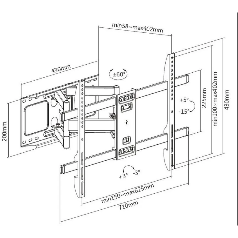 AJUSTE DE INCLINACIÓN Y DISTANCIA PERSONALIZABLE: Este soporte de pared para TV 80 pulgadas permite un ajuste de inclinación de -15 a 5 grados, optimizando la visualización según las preferencias del usuario. Su alcance de bandeja de -60 a 60 grados y la posibilidad de ajustar la distancia a la pared entre 5,8 cm y 40,2 cm brindan una mayor flexibilidad en la instalación. Gracias a su diseño ergonómico, se adapta a diferentes configuraciones de espacio sin comprometer la estabilidad del televisor.