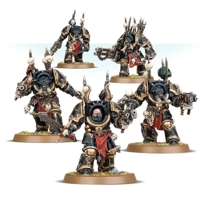 Si diriges un ejército de Marines Espaciales del Caos y necesitas una unidad de choque resistente, la Escuadra de Exterminadores del Caos aporta armaduras tácticas Exterminador, múltiples combiarmas y armamento pesado para ocupar el centro de la mesa y presionar objetivos clave.