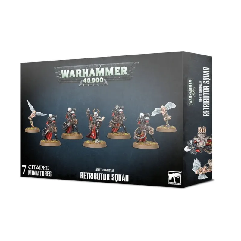 El set ofrece una unidad de Retributor Squad de plástico multicomponente con varias configuraciones de armamento, lo que te permite montar distintas combinaciones de armas pesadas y hermanas de escolta para adaptarlas a tu lista y a tu estilo de juego.
