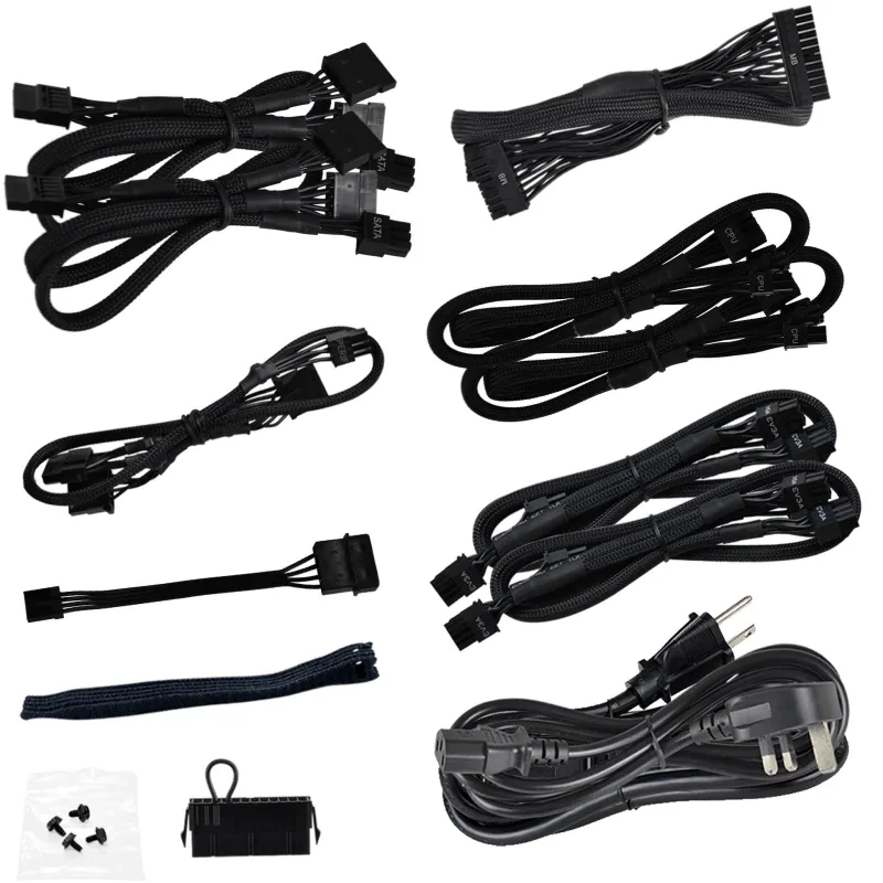 CONEXIONES VERSÁTILES: Equipada con un alimentador de energía de 24 pines para la tarjeta madre y seis conectores de energía SATA, esta solución ofrece una flexibilidad inigualable para conectar múltiples dispositivos de almacenamiento. Los cables de alimentación SATA varían en longitudes de 550, 650 y 750 mm, brindando la adaptabilidad necesaria para configuraciones internas complejas. Incluye también tres conectores Molex de 4 pines y un conector de alimentación EPS (4+4 pines), asegurando compatibilidad con una amplia gama de componentes. Los cuatro conectores de poder PCI Express (6+2 pines) y el conector de alimentación CPU (4+4 pines) facilitan la compatibilidad con tarjetas gráficas de alto rendimiento y procesadores exigentes, mientras que la longitud del cable de alimentación PCI Express de 85 cm y el cable de alimentación CPU de 70 cm garantizan una instalación ordenada y sin tensiones.