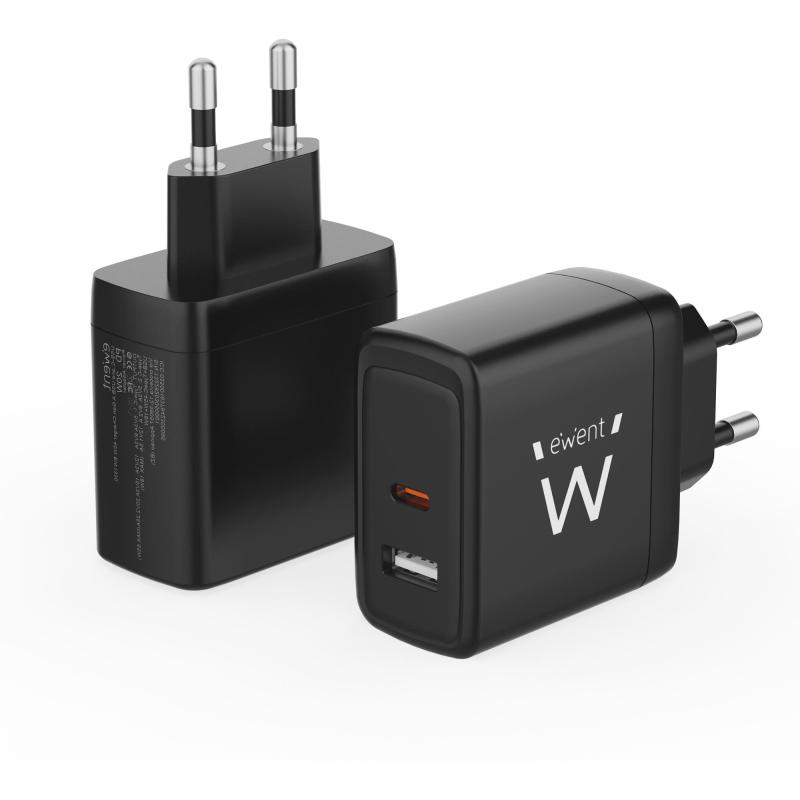 Cargador de Smartphone Ewent EW1330 USB-A/USB-C de Carga Rápida con 65 W con Compatibilidad Universal Color Negro
