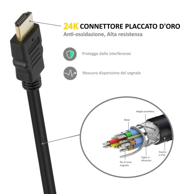 CALIDAD DE IMAGEN Y SONIDO INIGUALABLE: Este cable HDMI 1.4 garantiza una transmisión de señal impecable gracias a sus contactos chapados en oro, ofreciendo una experiencia audiovisual superior.