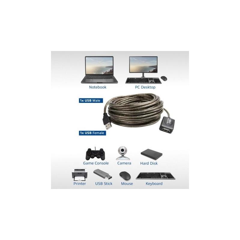 - Amplifique la señal USB hasta una distancia de 10 metros con este cable amplificador de señal USB