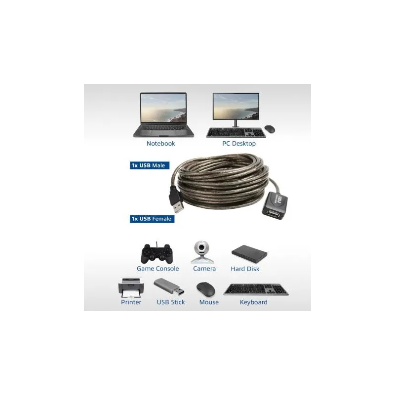 - Amplifique la señal USB hasta una distancia de 20 metros con este cable amplificador de señal USB