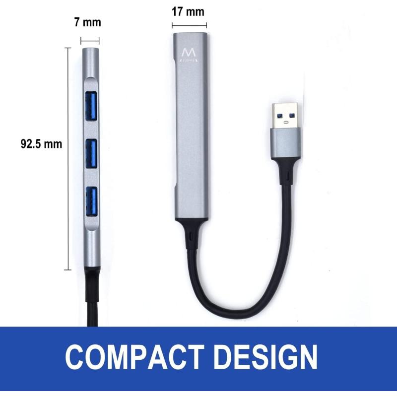 Este concentrador cuenta con 4 puertos USB para una mayor versatilidad, incluyendo 3 puertos USB 2.0 y 1 puerto tipo A USB 3.2 Gen 1 (3.1 Gen 1), permitiéndote conectar múltiples dispositivos simultáneamente. Su diseño en color gris y plata no solo es elegante, sino que también es compacto, con dimensiones de 92,5 mm de ancho, 17 mm de profundidad y 7 mm de altura, lo que facilita su portabilidad.