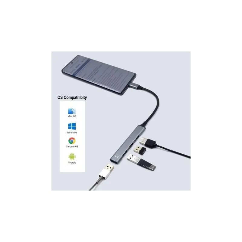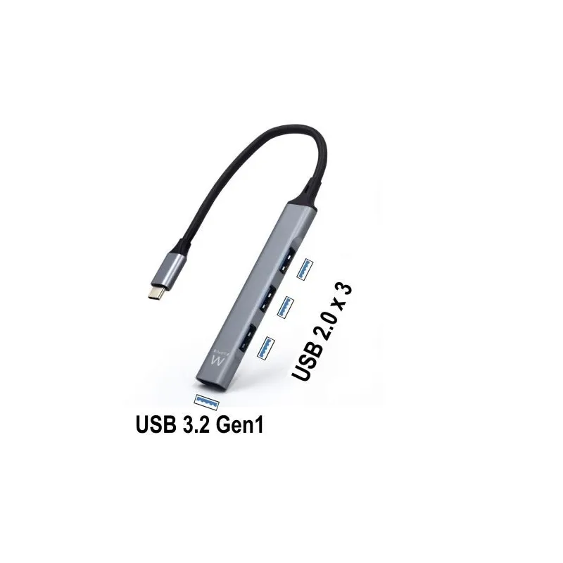 Ewent EW1145 HUB USB-C 3.0 a USB-A 3.0 4 Puertos 17 cm Gris