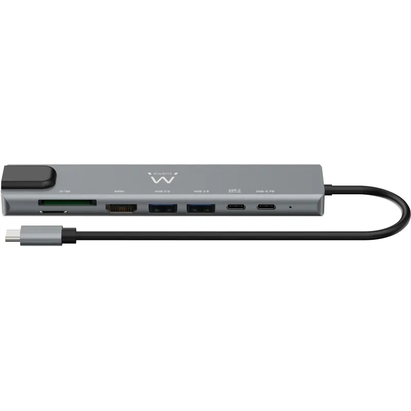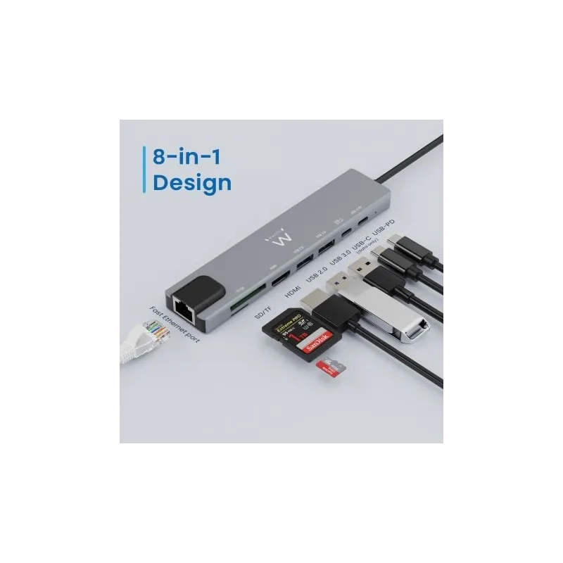 Ewent EW1146 Docking Station 8 puertos USB-C a USB-C/USB-A/HDMI/RJ-45/MicroSD/SD Gris