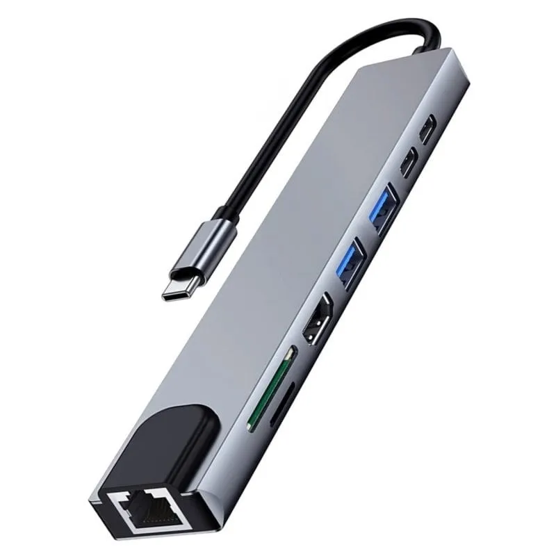 USB-C Macho a USB-A x2 / USB-C PD / USB-C Datos / HDMI / RJ-45 / MicroSD / SD Hembra