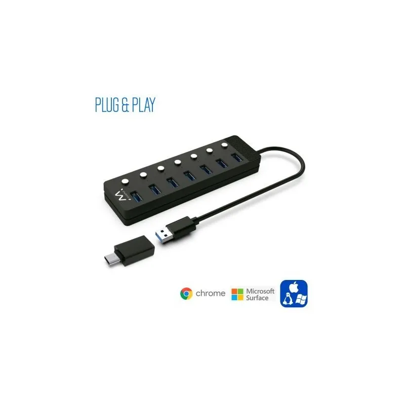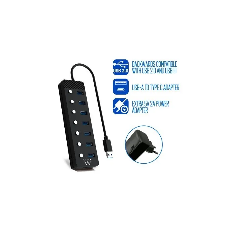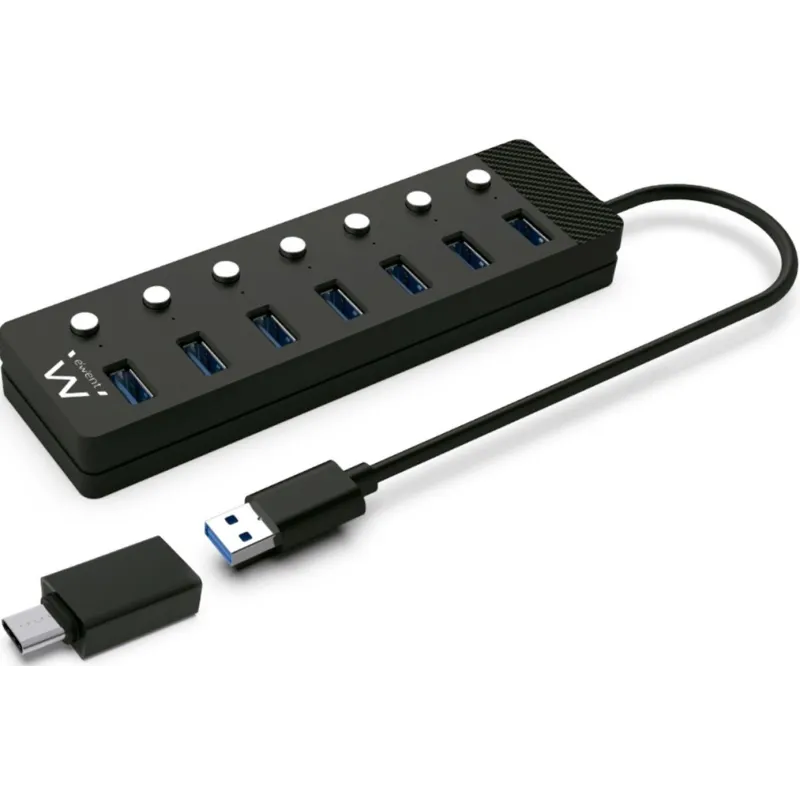 Ewent EW1147 HUB USB-A 3.0 a USB-A 3.0 7 Puertos 1 M Negro + Adaptador USB-A a USB-C