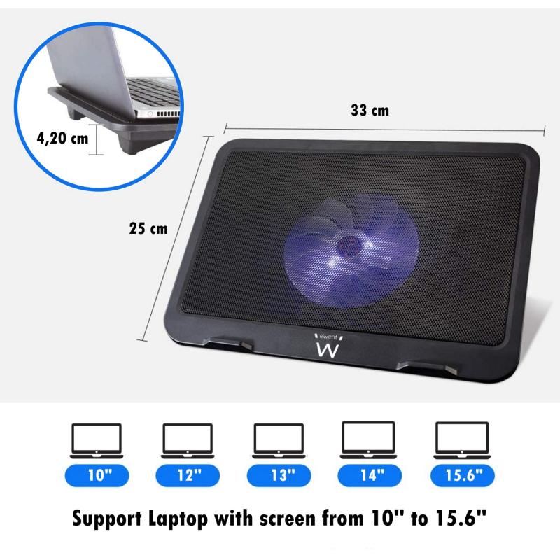 Base de Refrigeración Ewent EW1250 para portátil de hasta 16" 1000 RPM Diseño compacto, ventilador silencioso de 12,5 cm Negro