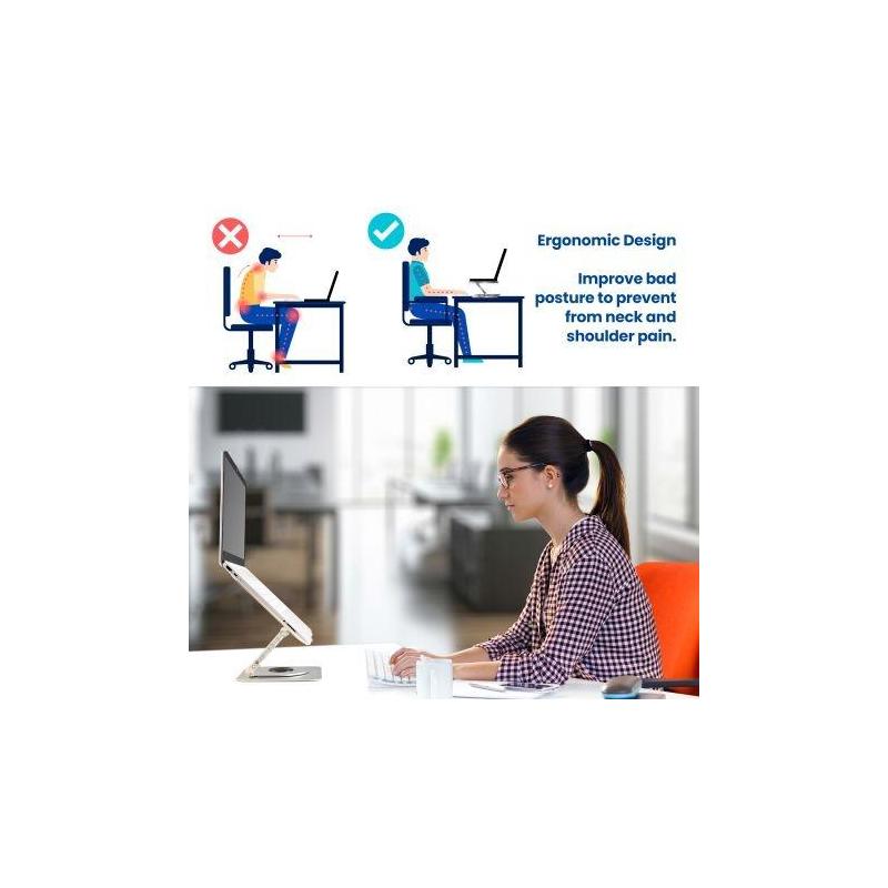 AMPLIA VISIBILIDAD: El soporte para portátil está construido con una base giratoria de 360°, por lo que es sencillo compartir la información presente en la pantalla de tu ordenador portátil con otras personas.