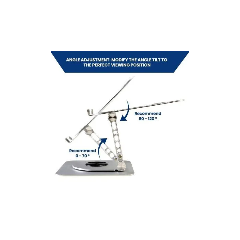 La ergonomía es una prioridad con este soporte, ya que es plegable y ajustable, permitiendo personalizar la altura según tus necesidades. Además, se puede rotar completamente con un ángulo de rotación de 360°, ofreciendo la máxima flexibilidad para encontrar el ángulo de visión perfecto.
