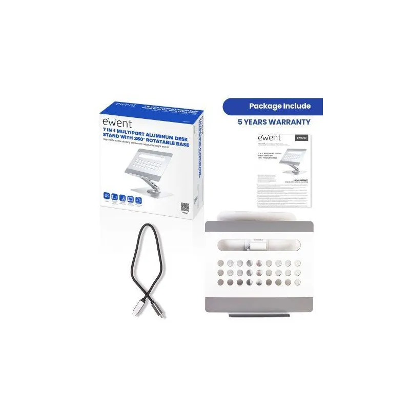 Ewent EW1269 Soporte para Portátiles Ajustable Rotatorio Multipuerto de 10"-17" Aluminio