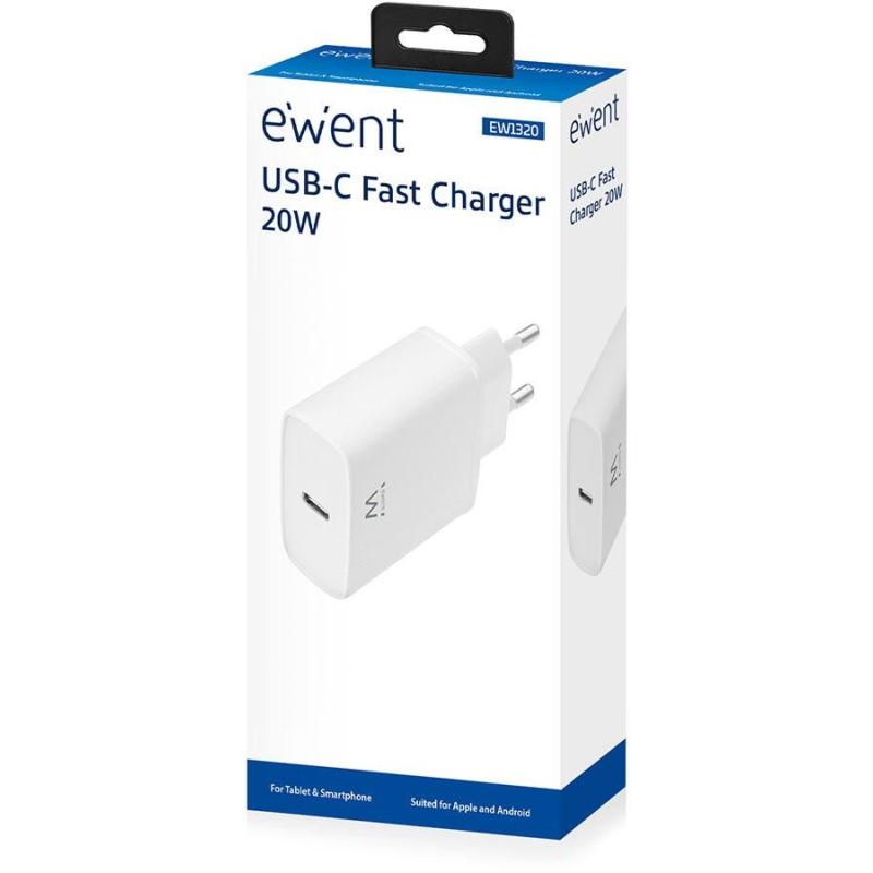 Ewent EW1320 Cargador de Pared USB-C 20W Carga Rápida Blanco