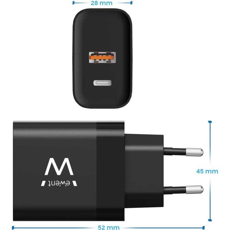 Ewent EW1327 Cargador USB-A/USB-C 45W Negro
