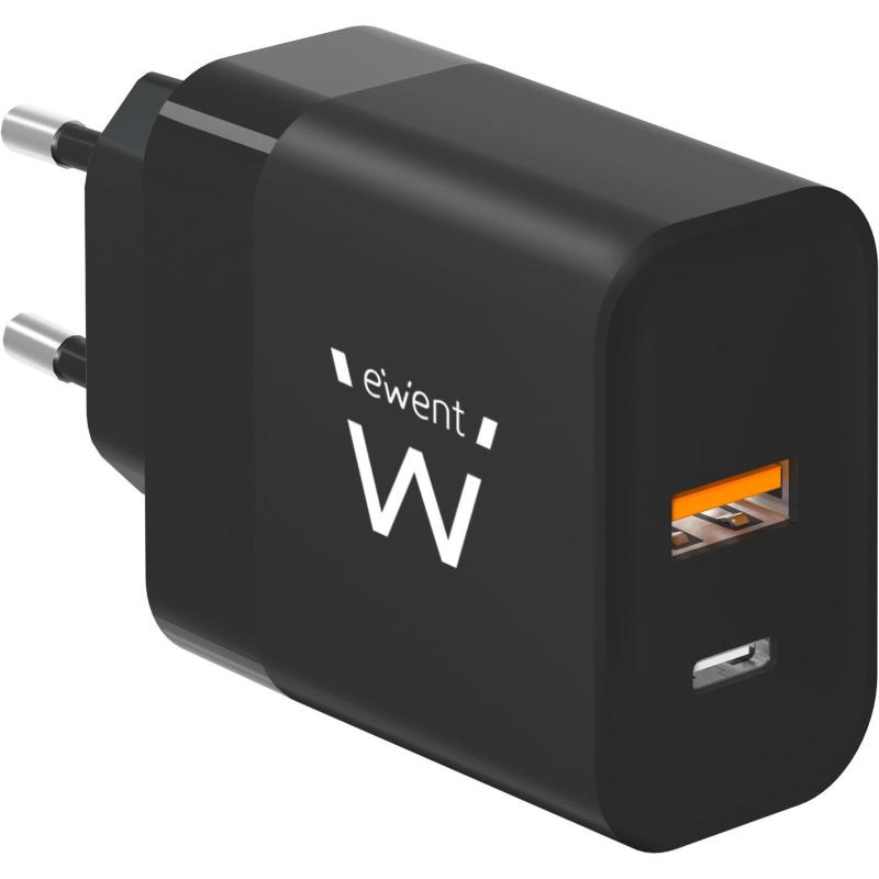Cargador de Smartphone Ewent EW1327 USB-A/USB-C de Carga Rápida con 45 W con Compatibilidad Universal Color Negro
