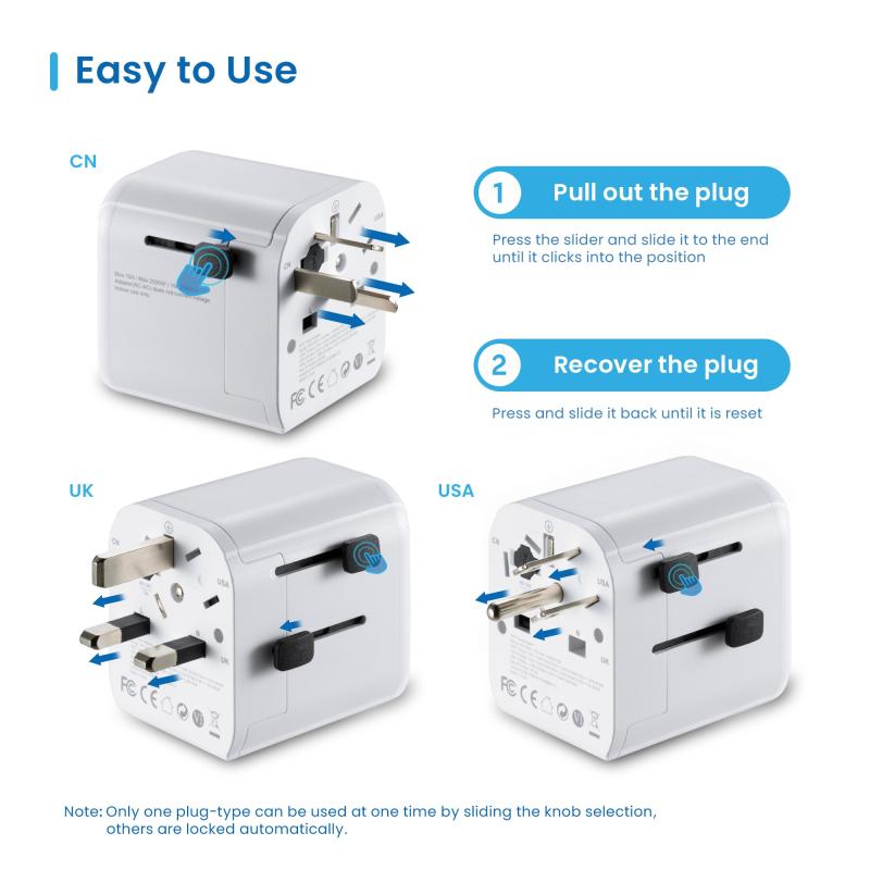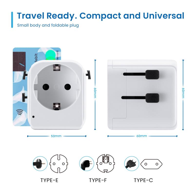 DISEÑO COMPACTO Y ELEGANTE: Este adaptador de viaje en color blanco combina funcionalidad y estilo, siendo perfecto para cualquier entorno, ya sea en el hogar, la oficina o durante tus viajes. Su diseño compacto y ligero asegura una portabilidad excepcional, mientras que los indicadores LED añaden un toque moderno y práctico.