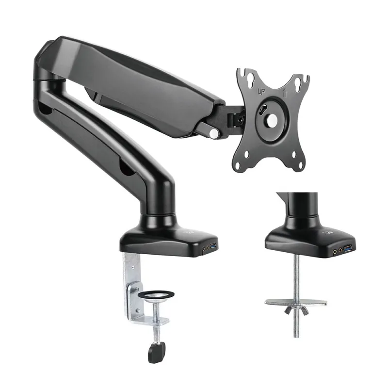 OPTIMIZA TU ESPACIO DE TRABAJO: ¿Te gustaría tener un escritorio más amplio y ordenado, donde puedas trabajar con comodidad y eficiencia? Te permite colocar tu pantalla de 13" a 27" en la posición que prefieras, con solo moverla con tu mano. Podrás ajustar su altura, su inclinación, su giro y su rotación según tus necesidades. Y para que no tengas cables sueltos por el medio, el brazo incorpora un sistema de gestión de cables que los oculta y los organiza.