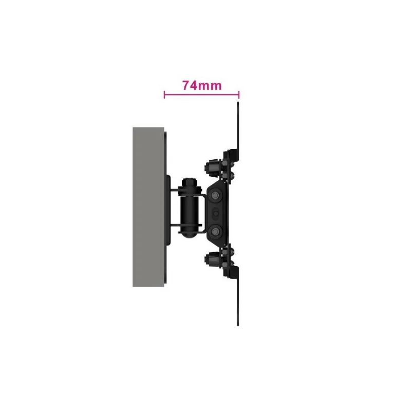 13" - 42" - Compatible con VESA: 75x75, 100x100, 200x100 - Peso máximo soportado de pantalla: 20 kg - Ángulo de inclinación: -12 - 5° - Ángulo de giro: -15 - 15°