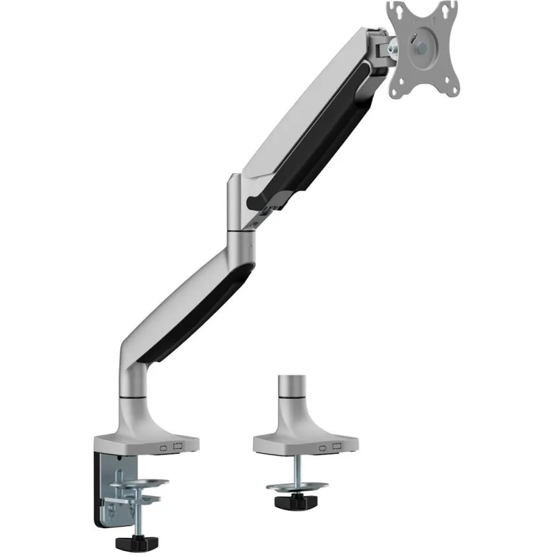 ADAPTA TU ENTORNO DE TRABAJO CON FACILIDAD: Ewent Ew1527 Soporte de Mesa para Monitor Diseñado para transformar tu espacio de trabajo, este soporte ajustable ofrece una solución versátil para pantallas que van desde 17" hasta 49". Su capacidad de soportar hasta 20 kg garantiza estabilidad y seguridad, mientras que su sistema de montaje mediante abrazadera o atornillado se adapta a escritorios con grosores de 1 a 8 cm, permitiendo una instalación sin complicaciones. La estructura robusta, combinada con materiales de alta calidad como aluminio, plástico y acero, asegura una durabilidad excepcional, ofreciendo un equilibrio perfecto entre resistencia y ligereza.
