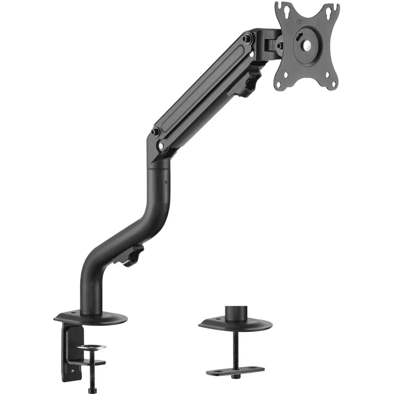 TRANSFORMA TU ESPACIO, A TU GUSTO: Descubre la flexibilidad en tu espacio de trabajo. Este soporte te ofrece un rango de 43,2 cm (17") a 81,3 cm (32"), eliminando las barreras visuales. Con una capacidad de carga de hasta 8 kg, se convierte en tu aliado perfecto para los días más exigentes. Su sistema de montaje dual, ya sea mediante abrazadera o atornillado, garantiza una instalación sólida y segura en superficies de 1 cm a 8 cm de grosor.