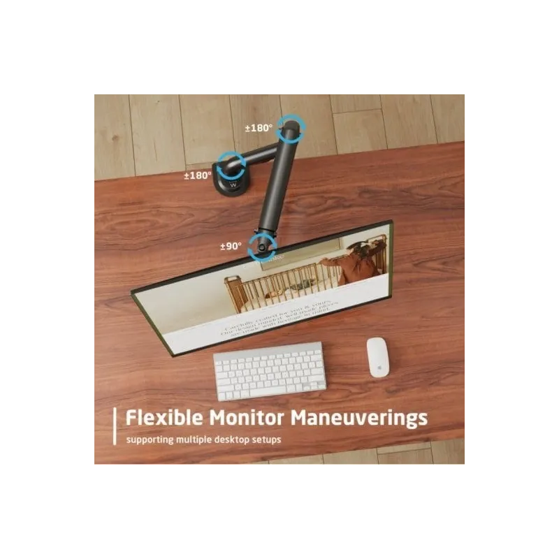 AJUSTE PERSONALIZADO PARA TI: Redefinimos la ergonomía con ajustes de altura manuales y un brazo que se extiende hasta 45,8 cm, permitiéndote encontrar la posición perfecta para cada tarea. Disfruta de la comodidad de un ángulo de inclinación de -45 a 90°, gira tu pantalla hasta 360° y aprovecha la libertad de tres puntos de pivote para una visualización óptima.
