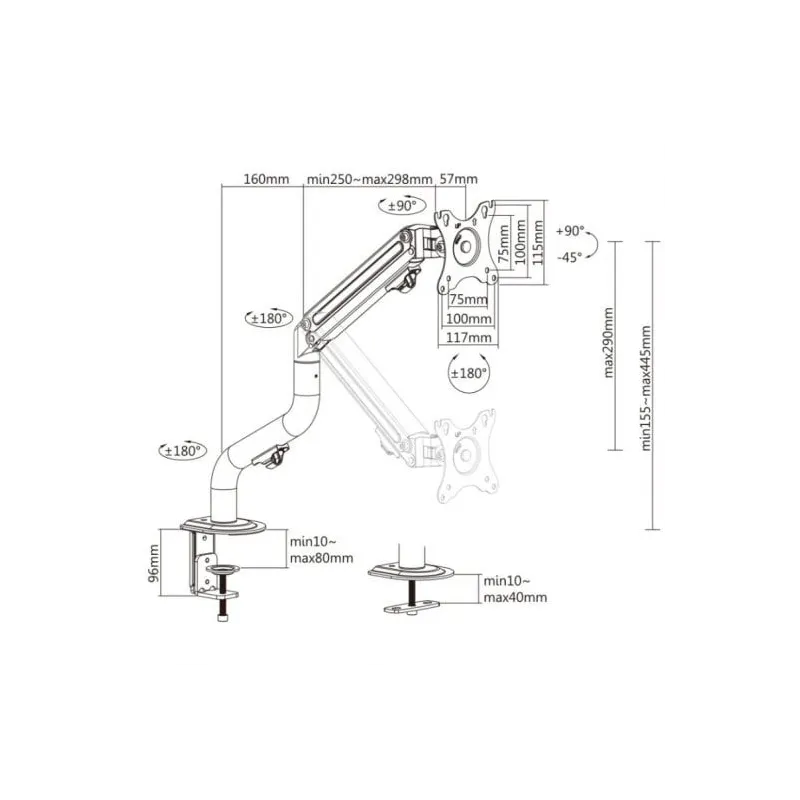 La ergonomía avanzada se manifiesta en su capacidad de ajuste de altura manual, permitiendo un ángulo de inclinación de -45 a 90°, y un giro completo de 360°. Con tres puntos pivote y un brazo extensible hasta 45,8 cm, adapta tu espacio de trabajo a tus necesidades y disfruta de la comodidad y flexibilidad que ofrece.